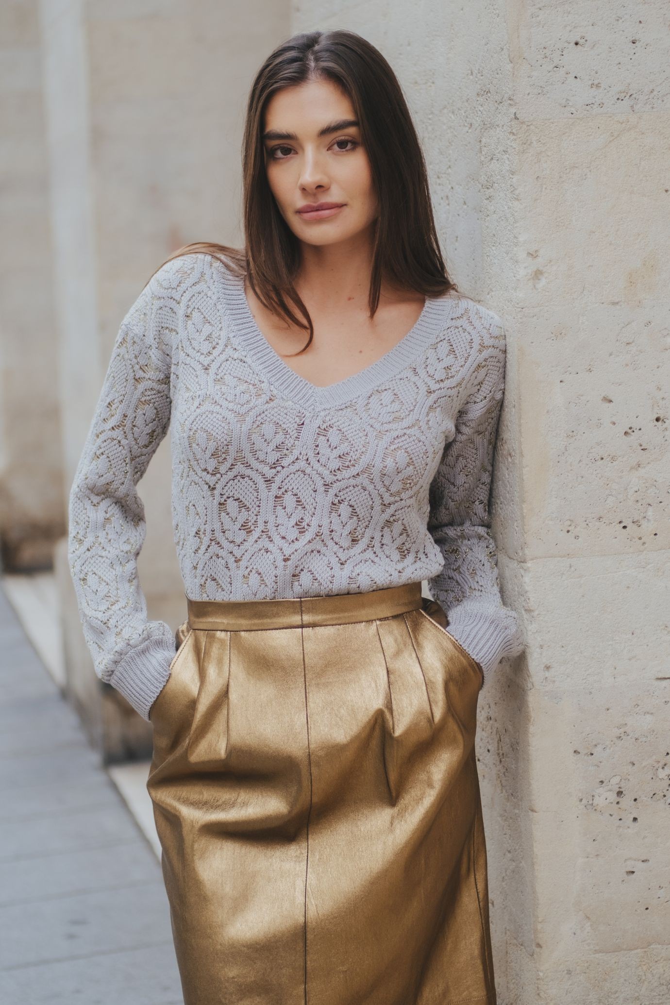 The Cassie Sweater reimagines openwork knitwear with timeless elegance.