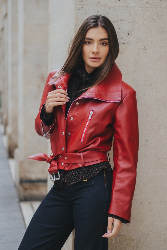 Chaque détail du perfecto est méticuleusement travaillé : le cuir souple et résistant assure un confort optimal tout en épousant parfaitement votre silhouette. Les finitions dorées ajoutent une note contemporaine.