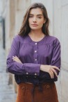 Ses boutons dorés martelés à la main reflètent un savoir-faire artisanal raffiné, tandis que son col arrondi et ses poignets larges à deux boutons soulignent une féminité contemporaine.