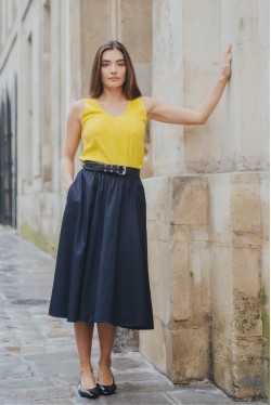 La jupe Meggie est confectionnée en popeline de coton, avec des panneaux évasés en forme de trapèze qui lui confèrent un tombé fluide et élégant.