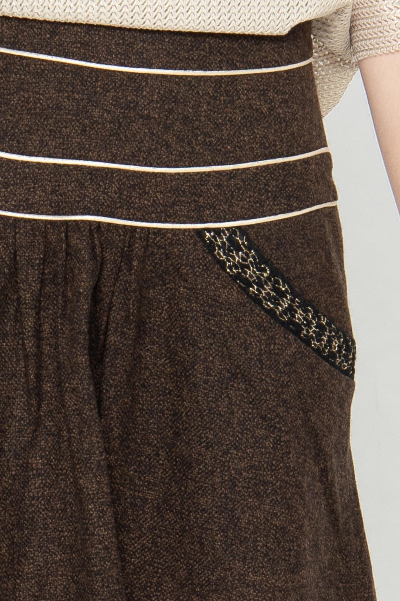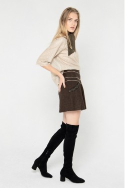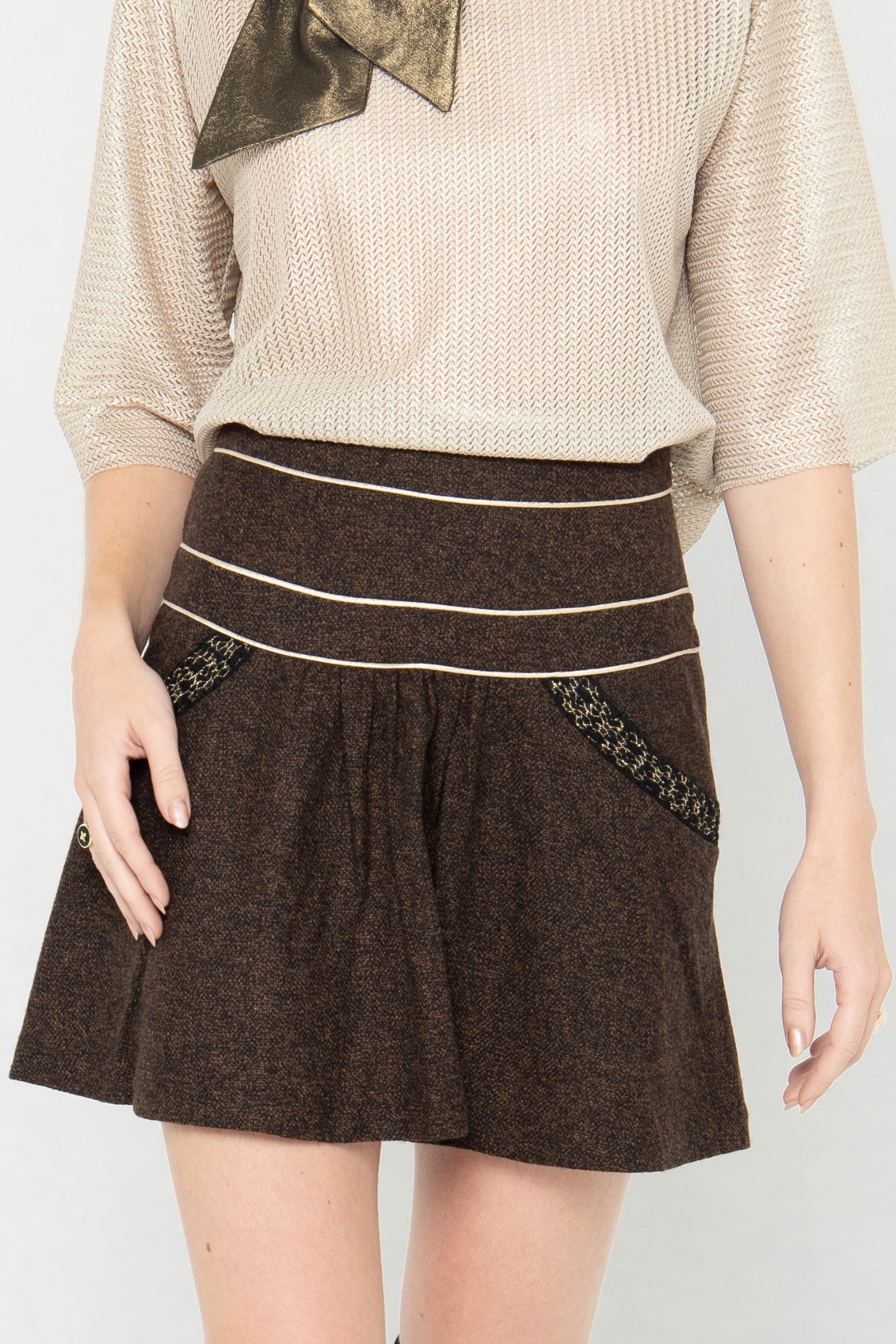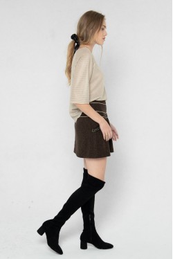 La jupe Masha est en laine, doublée au niveau de la ceinture, froncée devant.